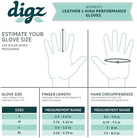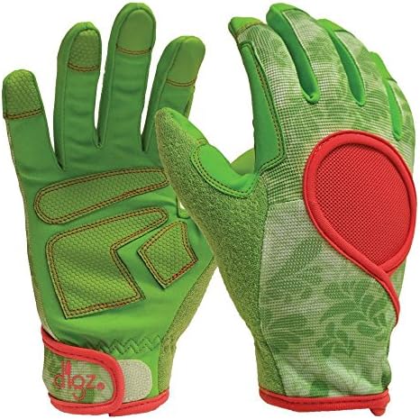 Digz Women’s Signature High Performance Women’s Gardening and Work Gloves are constructed from 4-way spandex providing comfort without compromising dexterity | Green Leaves Pattern | Size: Small